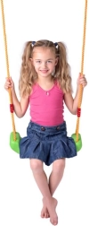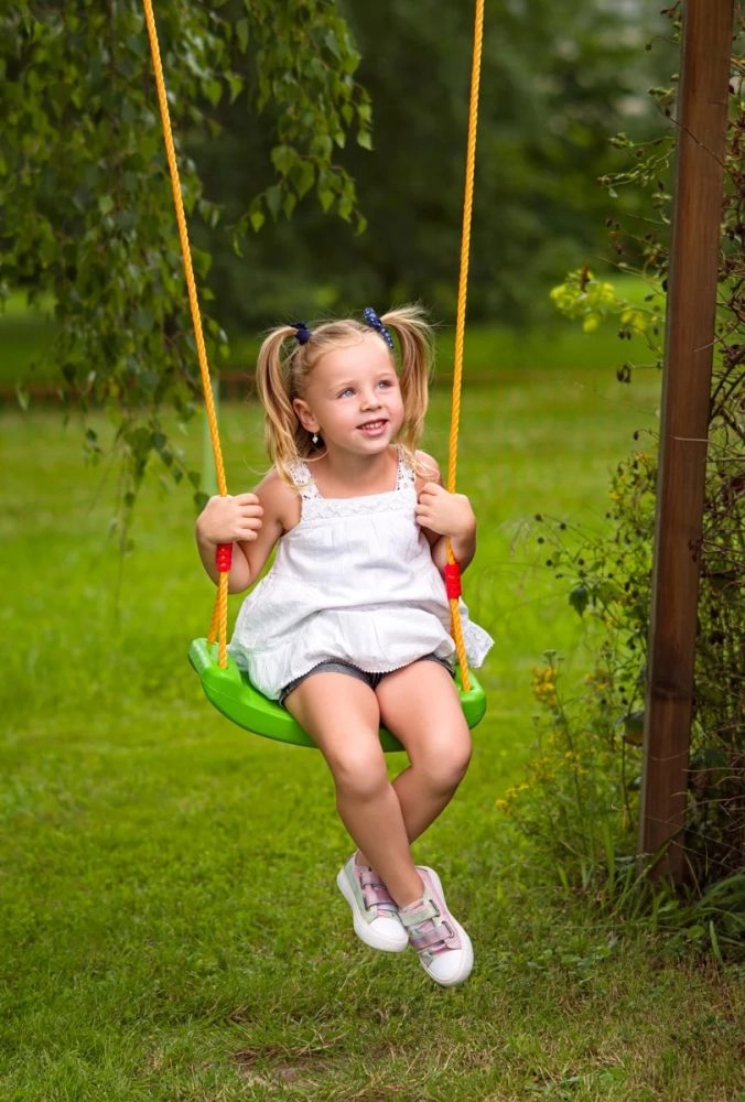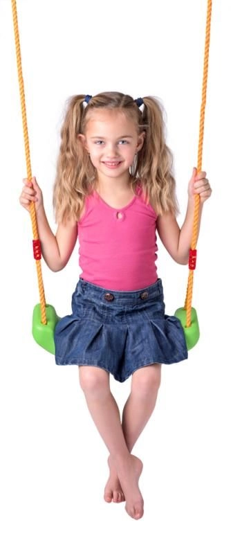 Pateicoties maksimālajai slodzei 80 kg, sēdeklis ir ideāli piemērots bērniem no 6 gadu vecuma un iztur intensīvu ikdienas lietošanu. Metāla gredzeni virvju galos nodrošina ātru montāžu pie vairuma standarta āķu un konstrukciju.