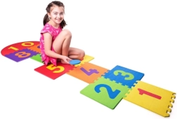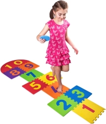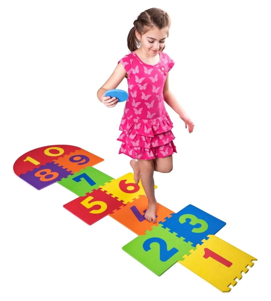 Lēkāšana pa numurētām daļām un riņķu mešana attīsta līdzsvaru, koordināciju, veiklību un skaitļu uztveri.