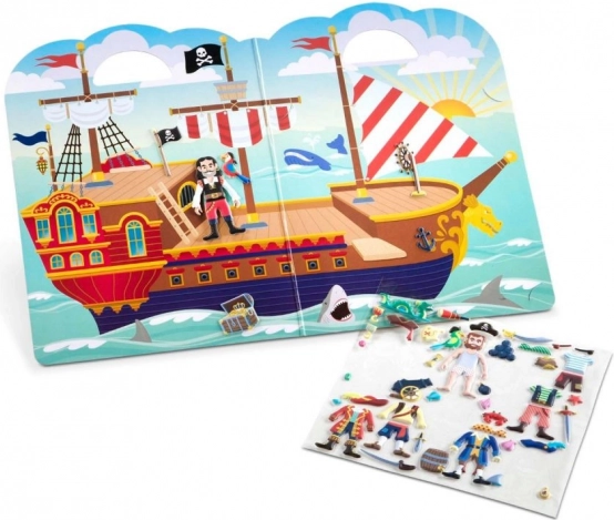 Izbaudiet piedzīvojumu pirātu kuģī ar šo unikālo spēļu komplektu. Jūsu bērni var veidot savus jūras stāstus, pateicoties bagātīgajam uzlīmju klāstam, kuras var izmantot atkārtoti.