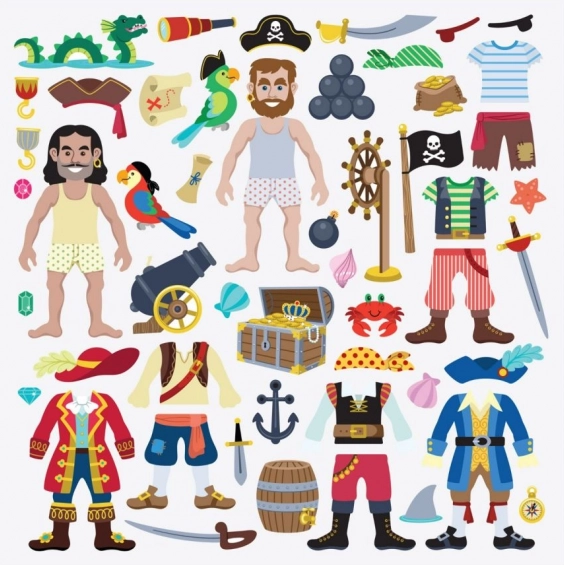 Radoši veidojiet savus jūras piedzīvojumus ar daudz detalizēti ilustrētām jūrnieku tēliem un aksesuāriem.
