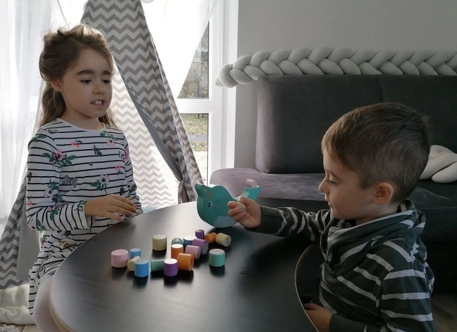 Izturīgas koka detaļas ar gludām malām, CE sertifikācija un maiga krāsu palete nodrošina drošu un estētisku spēli ikdienas lietošanai.