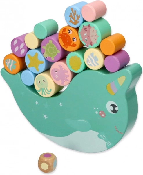 Atklājiet aizraujošu koka līdzsvara spēli ar narvalu, kurā bērni līdzsvaro krāsainus rullīšus ar jūras dzīvnieku motīviem uz šūpojošas pamatnes. Mērķis ir saglabāt līdzsvaru un likt detaļas tā, lai narvals neapgāztos – lieliska treniņspēle sīkajai motorikai, acu–roku koordinācijai un pacietībai.