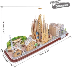 Šīs 3D puzles ienes jūsu mājās Barselonas noskaņu, tostarp slaveno SAGRADA FAMILIA un citus arhitektūras dārgumus. Gabaliņi ir iepriekš izgriezti, viegli izspiežami no loksnes un pēc instrukcijas gludi saliekami bez līmes un šķērēm. Gatavais modelis izcelsies kā stilīgs akcents viesistabā, darba kabinetā vai bērnistabā.