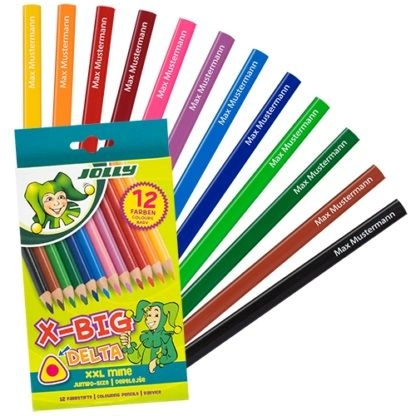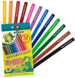 Komplekts ar lieliem trīsstūrveida krāsainajiem zīmuļiem X-Big Delta piedāvā 12 spilgtas krāsas, kas ir ideāli piemērotas bērnu radošajām aktivitātēm. Pateicoties ergonomiskajai formai, zīmuļi ir ērti bērniem no 3 gadu vecuma.