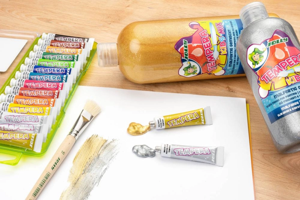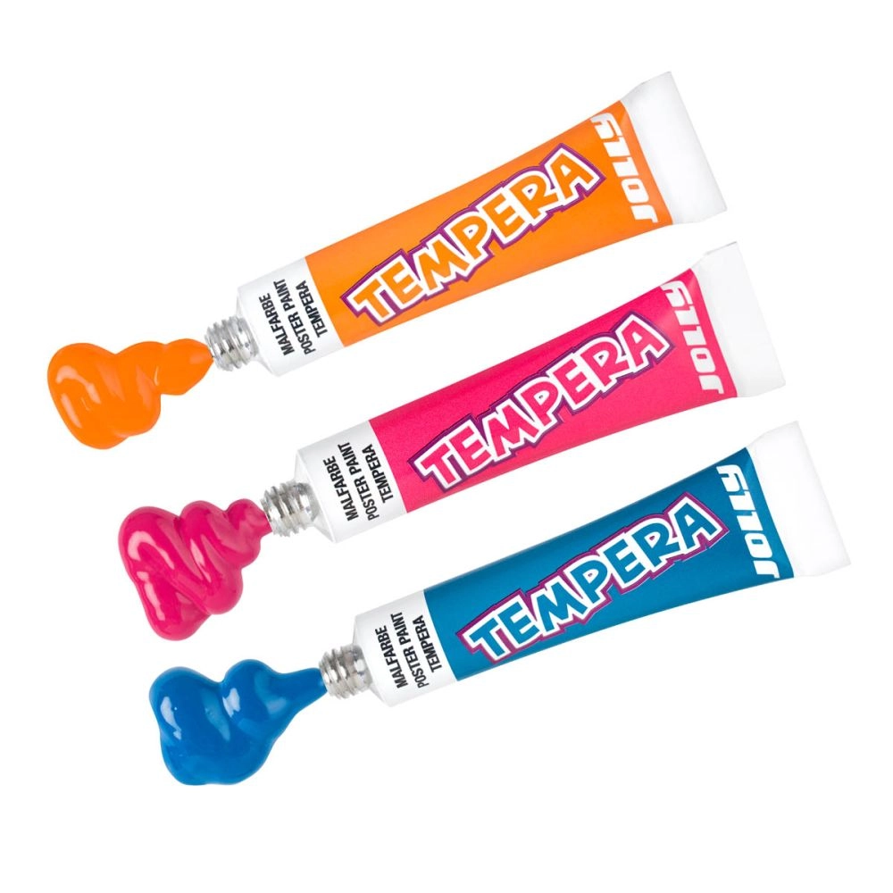 Jolly temperas ir piemērotas dažādām mākslas un rokdarbu aktivitātēm, tostarp plakātu un dekorāciju veidošanai. Lai pasargātu apģērbu, iesakām izmantot speciālu priekšautu 3+.