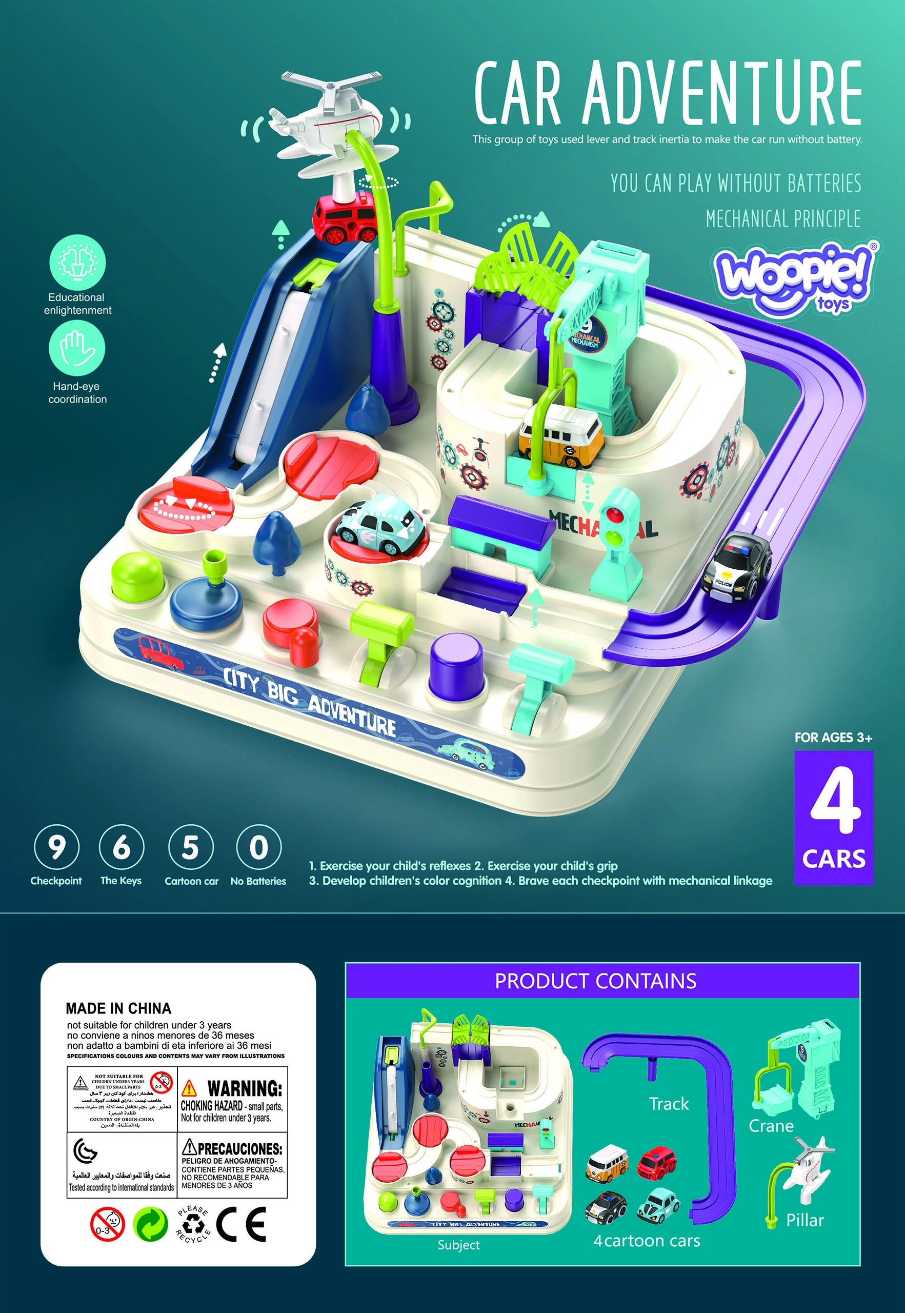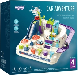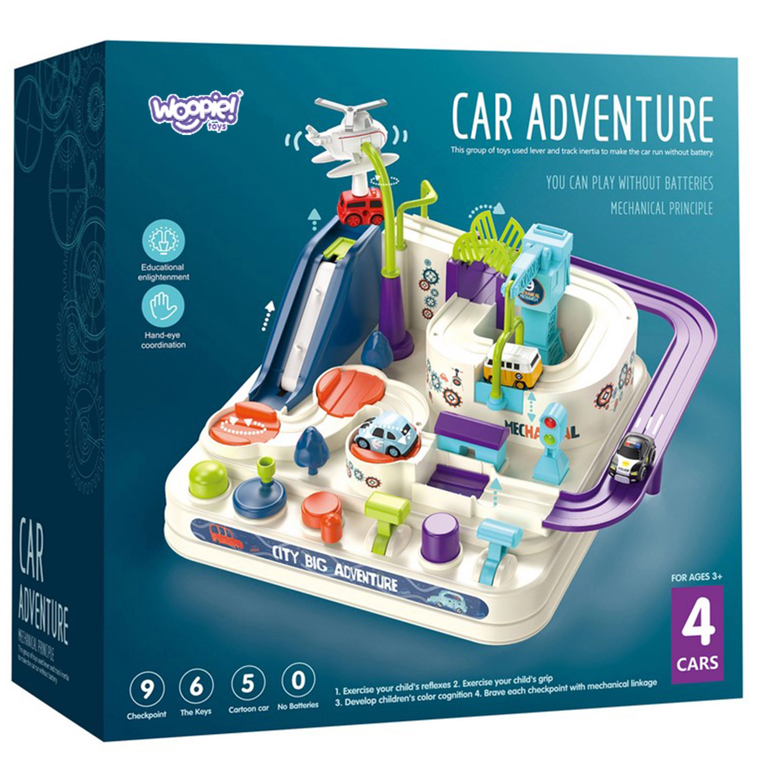 Interaktīvā trase Woopie “Pilsētas transportlīdzekļi” ir lieliska dāvana mazajiem pētniekiem no 3 gadu vecuma. Tā piedāvā aizraujošus šķēršļus, kustīgas detaļas, kuras vada pogas un ritenīši, kā arī trīs mašīnītes komplektā. Bērni attīsta smalko motoriku, loģisko domāšanu un acu–roku koordināciju – un tas viss bez baterijām.