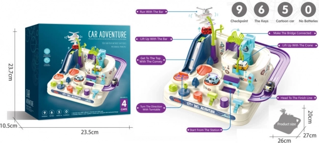 Vadības pogas un grozāmie ritenīši piešķir bērniem kontroli pār paceļamām platformām, kustīgām platformām un tiltu. Spēle attīsta plānošanu un lēmumu pieņemšanu – mazajiem braucējiem jāizdomā, kā vislabāk izbraukt maršrutu un pārvarēt izaicinājumus.