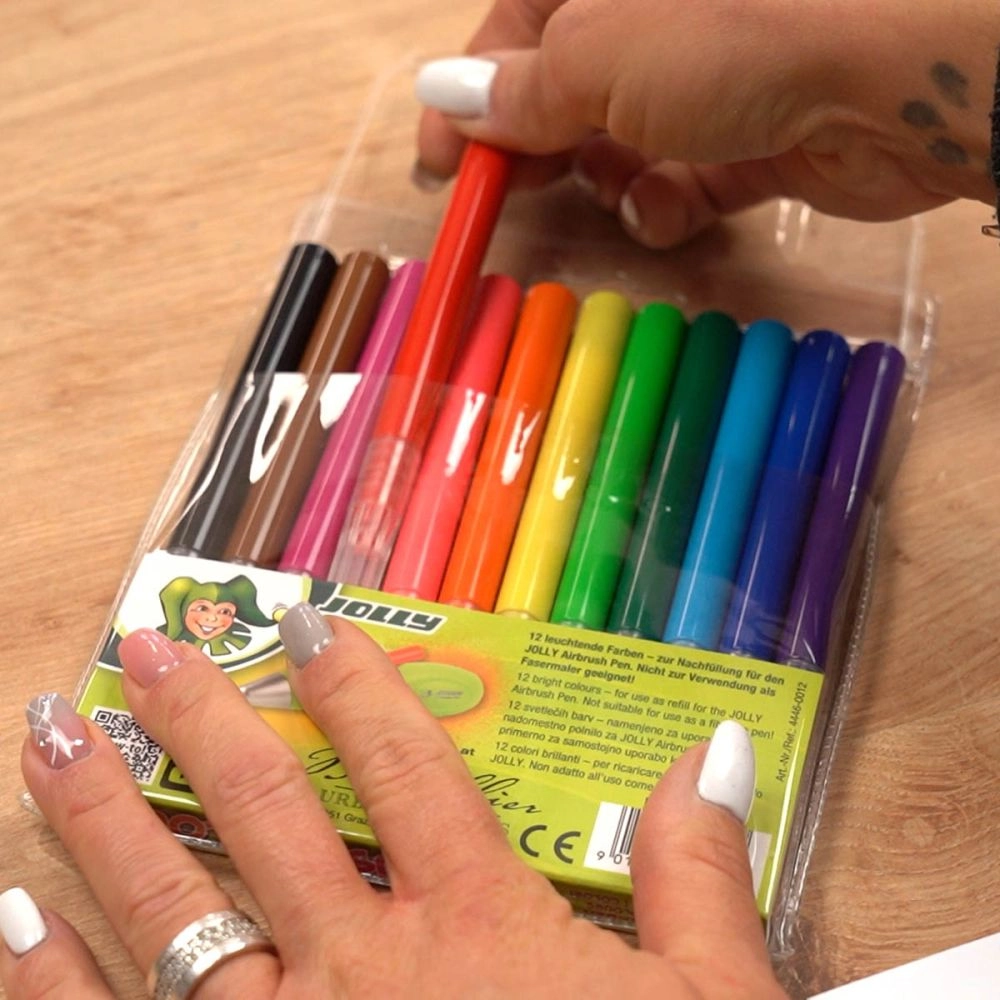 Svarīgi: kārtridži paredzēti tikai JOLLY Airbrush Fun un nav paredzēti kā parastie flomāsteri.