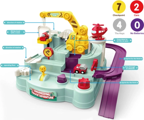 Šī šķēršļu trase pārvērš katru braucienu mazā piedzīvojumā. Trasē gaida vairāki šķēršļi, kurus bērni pārvar ar gudru vadību, izmantojot riteņus un sviras. Katrs panākums motivē turpmākiem mēģinājumiem un sniedz daudz prieka un veselīgas sacensības.