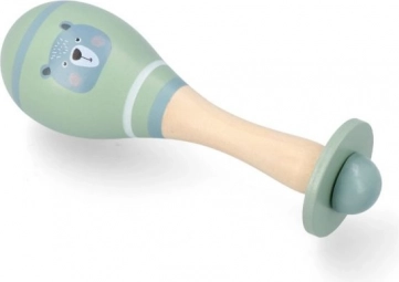 Šis kvalitatīvais koka marakass ar maigu lācīša motīvu ir ideāla pirmā mūzikas rotaļlieta zīdaiņiem. Sakratot tas rada patīkamu skaņu, kas veicina dzirdes uztveri un dabiski attīsta ritma izjūtu.