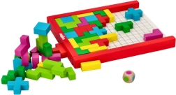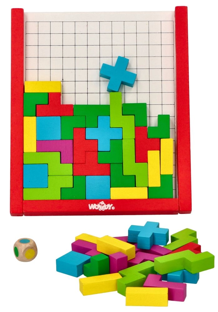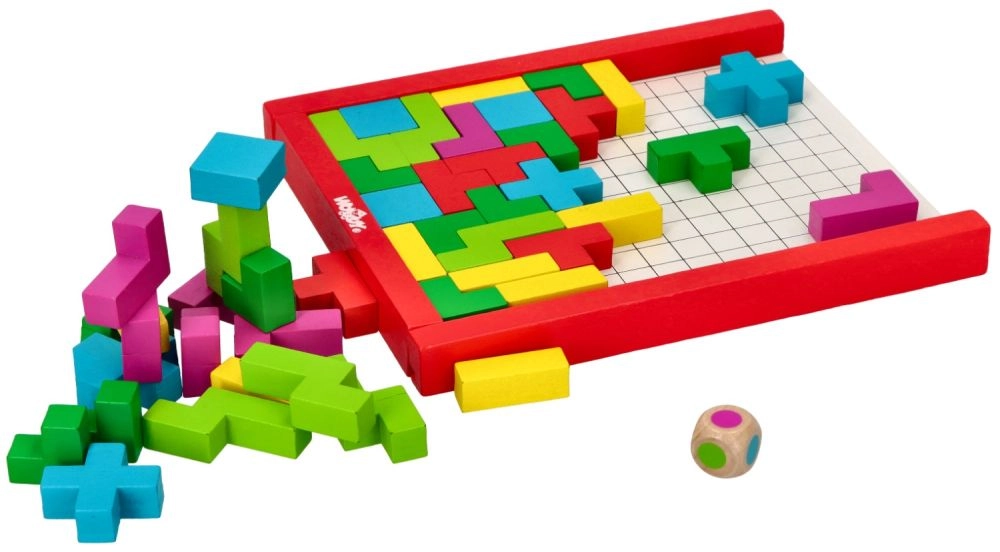 Atklājiet koka Tetris stila puzles burvību ar košiem ģeometriskiem gabaliņiem. Spēle ir izstrādāta, lai attīstītu telpisko iztēli un radošumu bērniem no 3 gadu vecuma. Katrs gabaliņš ir izgatavots no kvalitatīvas koksnes un veidots tā, lai perfekti ietilptu režģī.
