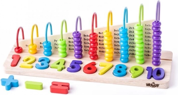 Šis skaitāmais rāmis palīdz bērniem trenēt saskaitīšanu un atņemšanu un vienlaikus kalpo kā izglītojoša puzle pašiem mazākajiem, kuri tikai mācās ciparus no 1 līdz 10.