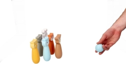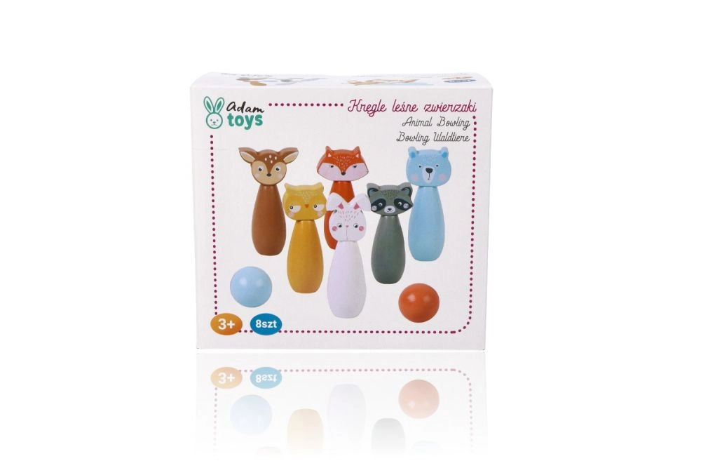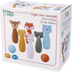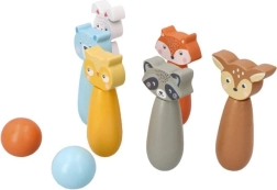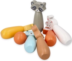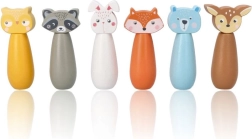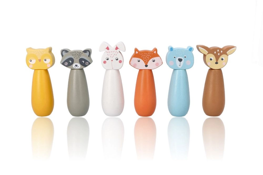 Krāsainie keglīši ar lapsas, lāča, truša, jenota, brieža un citu dzīvnieku motīviem aicina uz spēli un rosina bērnu iztēli.