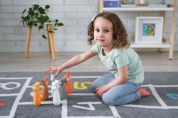 Keglīšus 12,5 cm augstumā un bumbas ar 5 cm diametru bērniem ir viegli satvert un ripināt – ideāli pirmajiem “boulinga” mēģinājumiem.