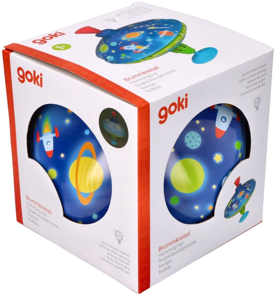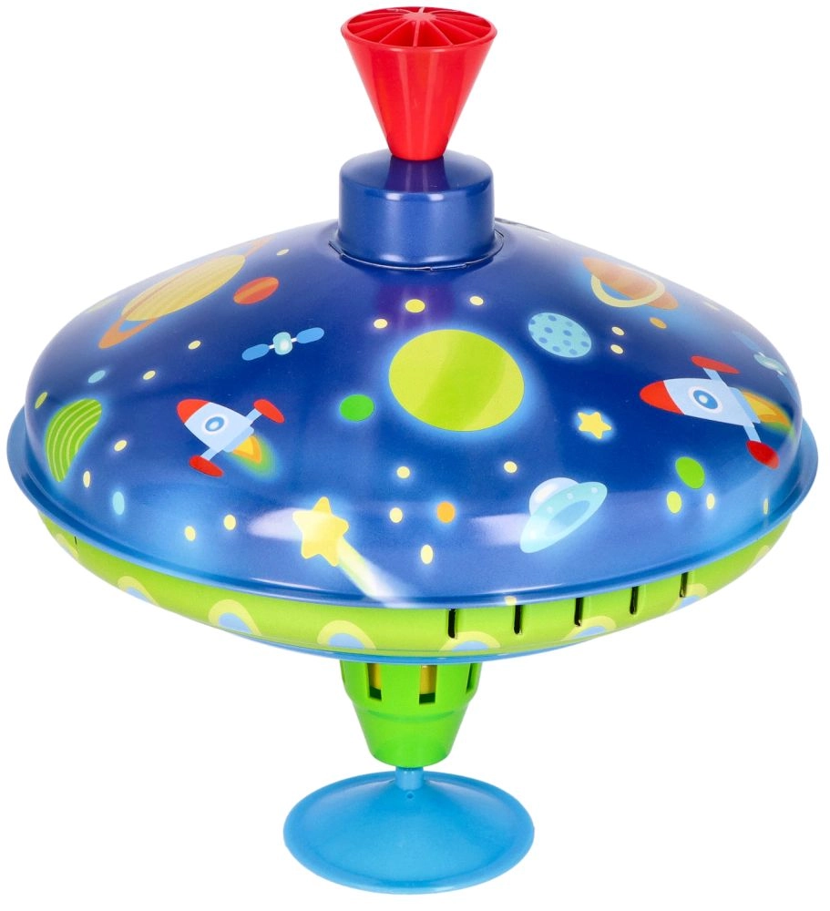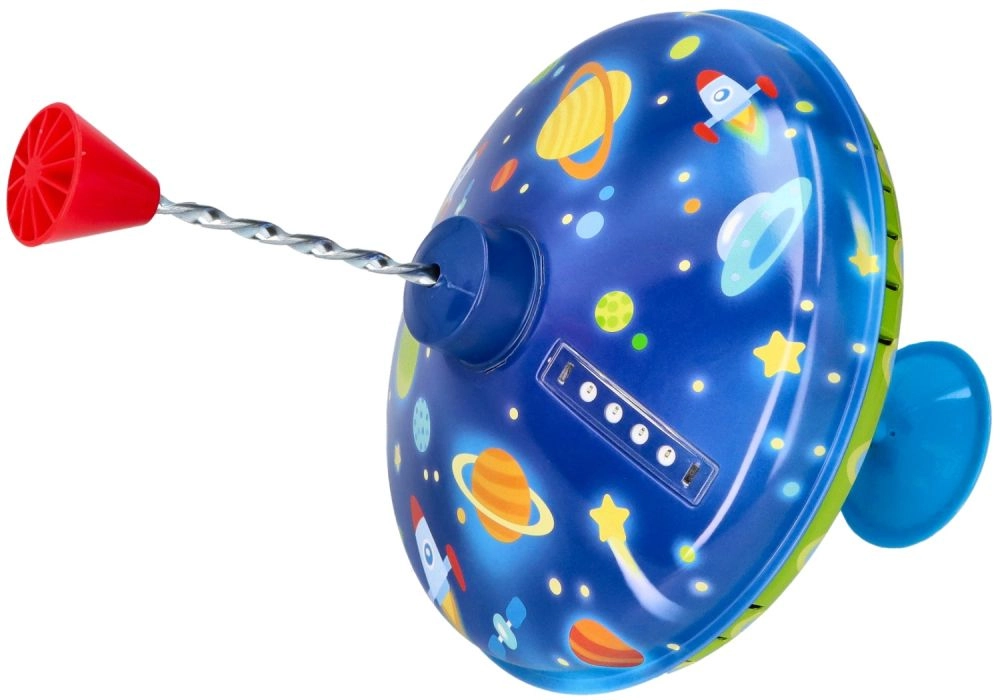 Šī košā metāla virpa ar kosmosa motīviem piesaista uzmanību jau no pirmā acu uzmetiena. Integrētā pamatne nodrošina stabilitāti, tāpēc tā ir piemērota arī pašiem mazākajiem bērniem. Vienkārši nospiežot augšējo rokturi, virpa iegriežas, iedegas LED gaismas un skan raksturīga, taču patīkama skaņa, kas pastiprina spēles prieku.