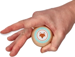 Kvalitatīvs koka korpuss ar jautriem motīviem (lapsa, sirsniņa, sēne u.c.) ir patīkams rokā un rosina spēlēties.