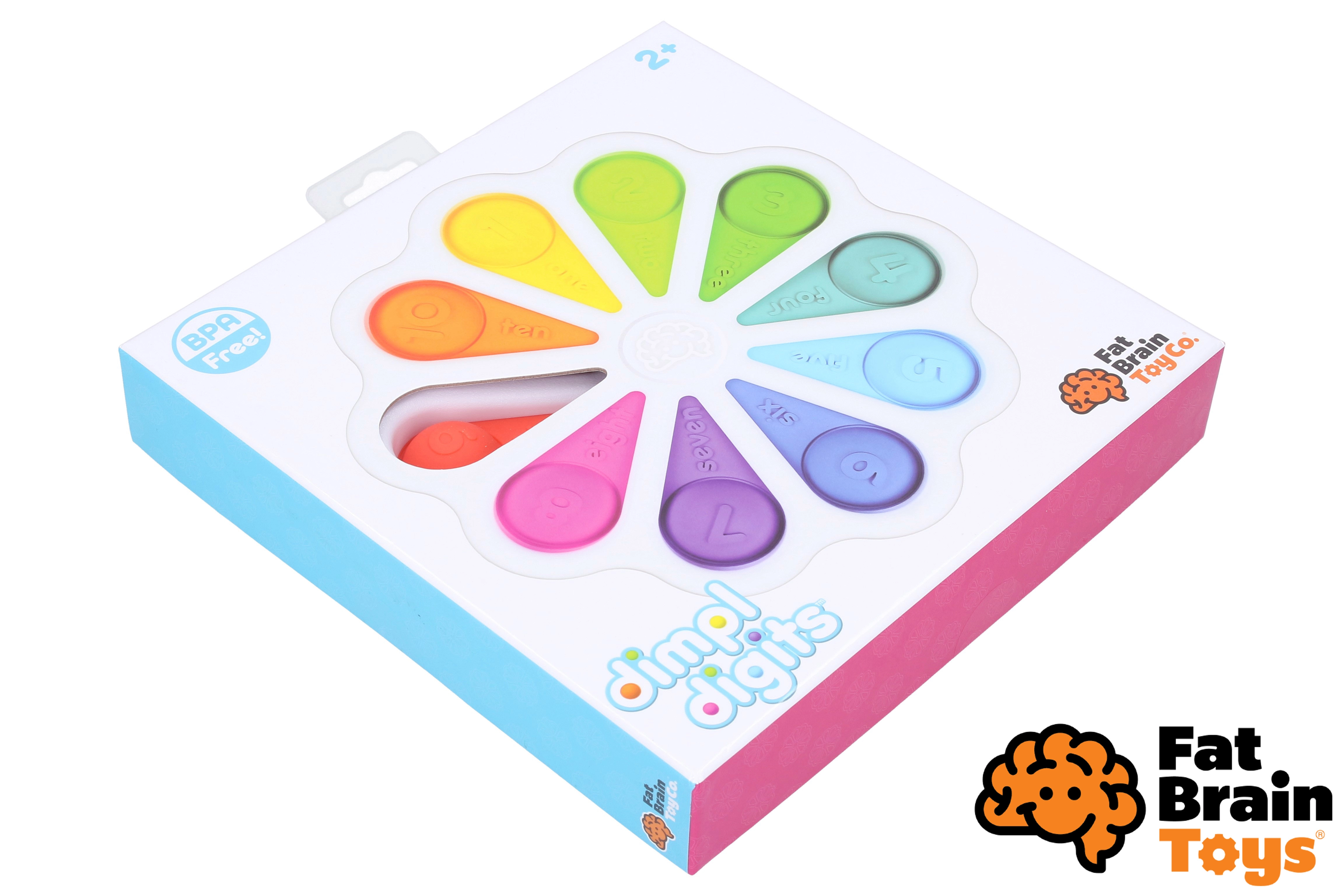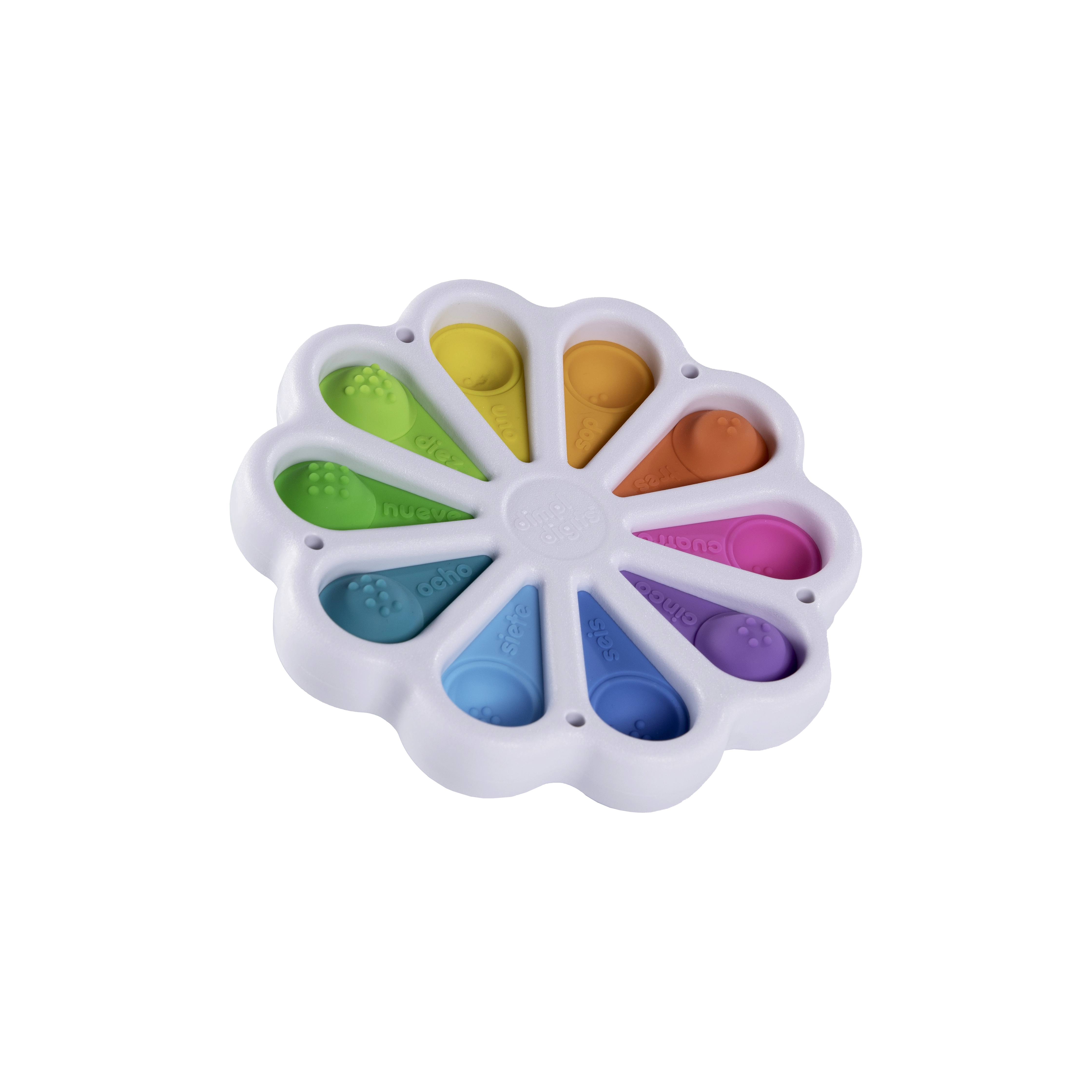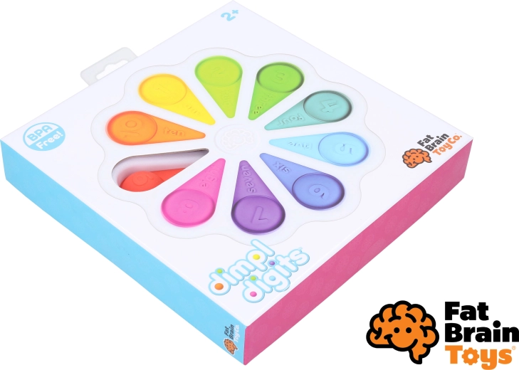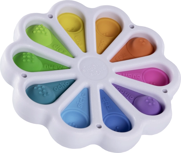 Maņu rotaļlieta Dimpl Digits bērniem sniedz nomierinošu “pop” efektu un vienlaikus pirmos soļus skaitļu iepazīšanā. Uz katra burbuļa augšpuses ir cipars ar angļu vārdu, bet apakšpusē – punktu skaits, kas atbilst konkrētajam skaitlim, ļaujot bērniem dabiski sasaistīt redzi, tausti un pamatprasmes matemātikā.