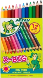 Lielie vaska krītiņi X-Big Jolly veicina radošumu un sīko motoriku. Pateicoties izturīgajai konstrukcijai, tie labi turas pat pašās mazākajās rokās un iztur spēcīgāku spiedienu zīmēšanas laikā. Komplektā ir 12 piesātināti toņi, kas gludi slīd pa papīru un atstāj vienmērīgu līniju.