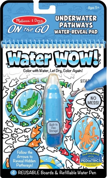 Atklājiet jautru un tīru krāsošanu ar krāsojamo grāmatu Water Wow! – atrod ceļu zem ūdens. Vienkārši piepildiet ūdens flomāsteri, pārvelciet pāri lapām un uzreiz parādīsies krāsas un slēptas taciņas. Ideāli ceļošanai, restorānā un mājās – bez nekārtības, lietojama atkal un atkal.