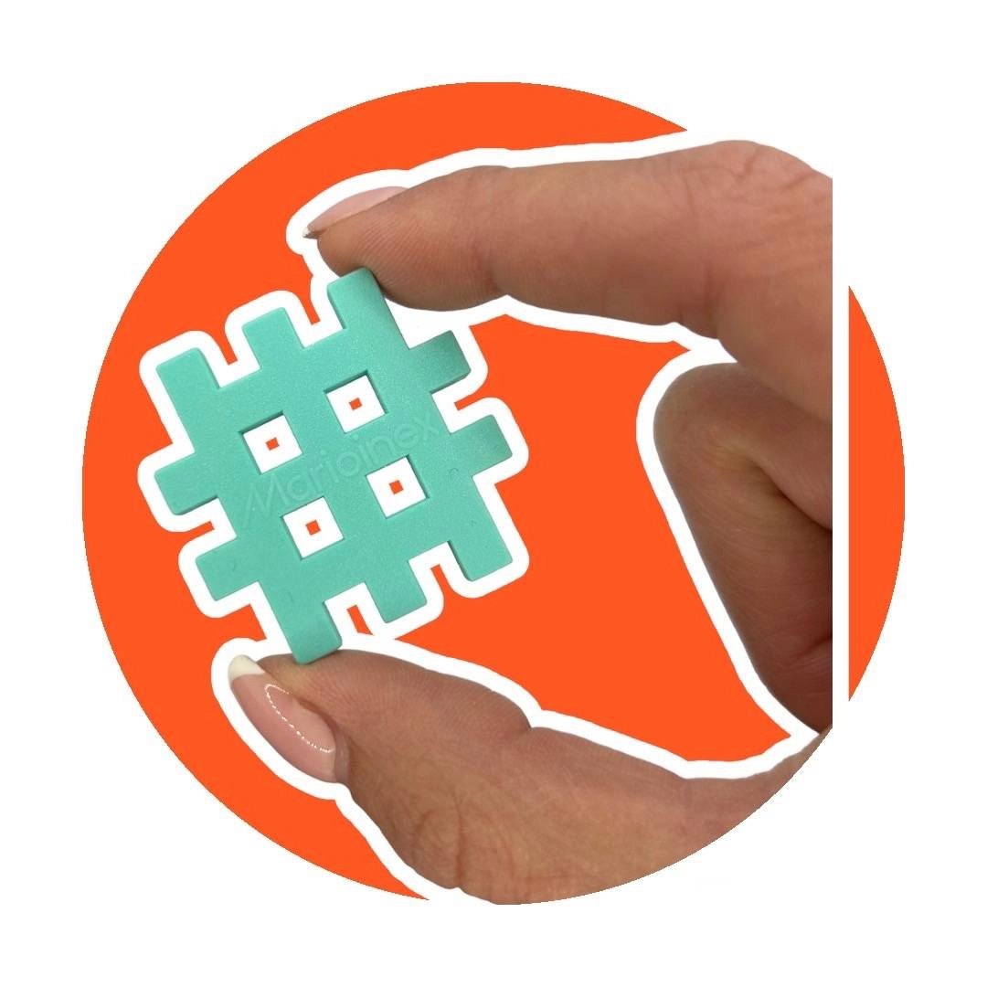 Marioinex klucīši ir droši izstrādāti un draudzīgi bērniem. Tie ir izgatavoti no elastīga, mīksta un pieskārienam patīkama materiāla. To forma lieliski der bērna rokai, bet krāsas ir maigas un patīkamas acīm.