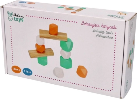 Adam Toys koka kraušanas akmeņi attīsta bērnu radošumu un motorikas prasmes. Šīs krāsainās ģeometriskās formas piedāvā bezgalīgas iespējas jautrai būvēšanai un līdzsvara spēlēm.