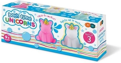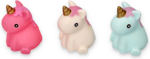 Atklājiet burvīgu vannošanās pasauli ar vienradžu komplektu maigos toņos. Katram vienradzim ir zeltains rags un jautra krēpe, kas rosina bērna iztēli. Pateicoties patīkami mīkstajam materiālam, tie viegli saspiežami un ideāli piemēroti mazām bērnu rokām.