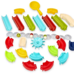 Šī ūdens marmora trase vannai piešķir ikdienas mazgāšanai daudz prieka un mācīšanās iespēju. Košās detaļas viegli kombinējas, tāpēc varat veidot arvien jaunas konfigurācijas un eksperimentēt ar lodīšu ātrumu un ūdens plūsmas virzienu.