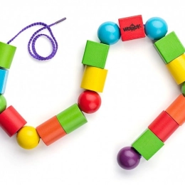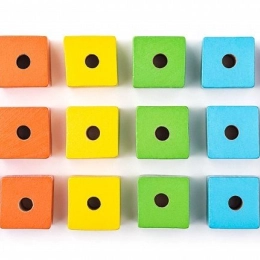 Apmēram 3 × 3 cm lielos koraļus bērniem ir viegli satvert un uzvērt – ideāli pirmajiem mēģinājumiem bez vilšanās.