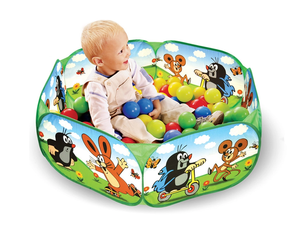 Bērnu rotaļu aploks ar iemīļotā varoņa Kurmiņa motīvu ir ideāli piemērots spēlēm un izklaidei. Universāla rotaļlieta bērniem, kuru var piepildīt ar bumbiņām vai iemīļotām rotaļlietām.