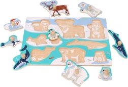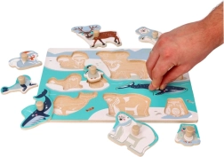 Šī kvalitatīvā puzle ir izgatavota pilnībā no koka un bērniem sniedz drošu, vienlaikus rosinošu spēli. Katrs gabaliņš attēlo arktisku dzīvnieku un ir aprīkots ar ērtu rokturi vieglai pacelšanai un ievietošanai pareizajā atvērumā.