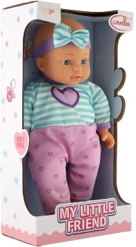 Lelle My Little Friend ir ideāls sabiedrotais jūsu bērnam. Tērpta krāsainā apģērbā ar skaistu lenti, šī lelle stimulē iztēli un attīsta tādas prasmes kā atbildība un empātija. Tās galviņa ir izgatavota no gumijas, savukārt ķermenis ir mīksts un auduma, kas piešķir tai reālismu. Ar augstumu 30 cm tā ir perfekta mazām bērnu rokām.