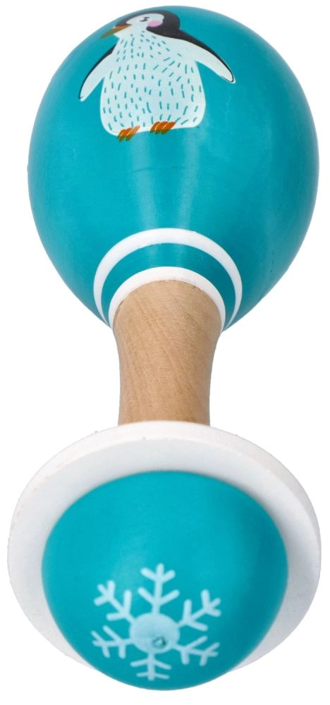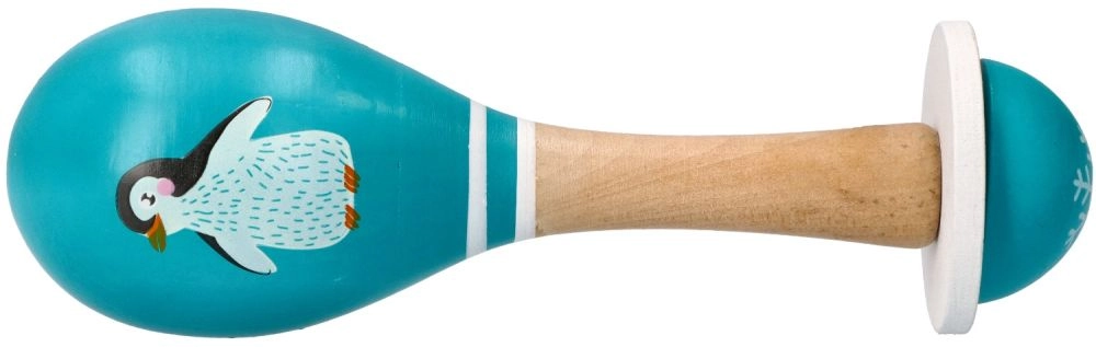 Šis košais koka marakass ar pingvīnu ir lielisks pirmais mūzikas instruments bērniem. Pateicoties kompaktajiem izmēriem, tas lieliski der mazajām rociņām un rada patīkamu, neagresīvu skaņu, kas veicina ritma izjūtu un acu–roku koordināciju.