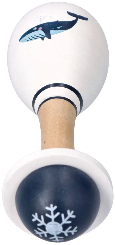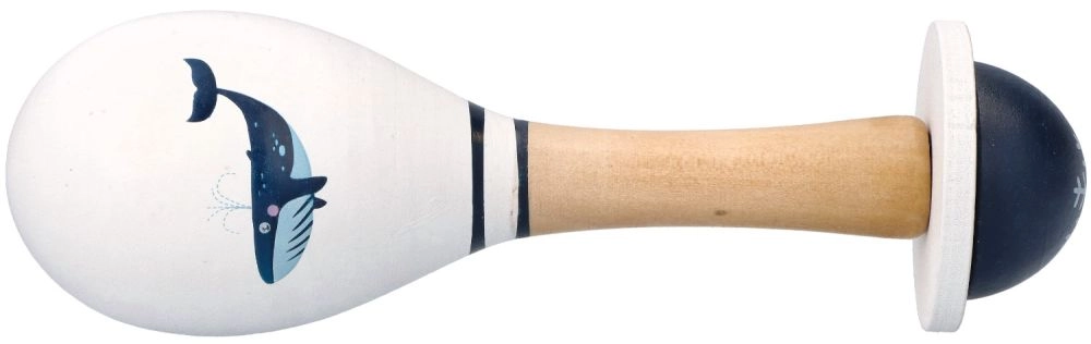 Mīlīga koka marakass ar vaļa motīvu iepriecinās mazos mūziķus jau no 5 mēnešu vecuma. Pateicoties ērtajam koka rokturim un maigajai skaņai, tā veicina sensoro attīstību, ritma izjūtu un motoriku. Drošas, bērniem piemērotas krāsas un rūpīga apdare ikdienas spēlēšanai.