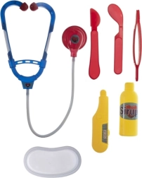 Bērnu ārsta komplekts piedāvā visu, kas mazajam dakterim nepieciešams rūpēm par pacientiem. Pateicoties krāsainiem piederumiem un kvalitatīvam izpildījumam, bērni izbaudīs stundām ilgu radošu spēli. Stetoskops, medicīniskie instrumenti un citi piederumi veicina iztēles attīstību un lomu spēles.