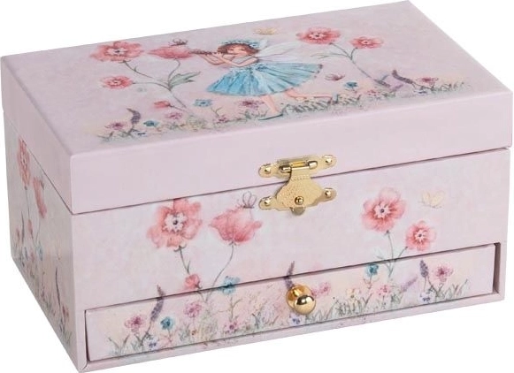 Eleganta muzikālā rotaslietu lādīte ar magoņu motīvu iepriecinās gan mazas dāmītes, gan dekorāciju cienītājus. Atverot skan melodija no baleta “Gulbju ezers” un balerīna sāk griezties spoguļa priekšā. Praktiskās nodaļas un atvilktne atvieglo pārskatāmu sīko dārgumu glabāšanu.