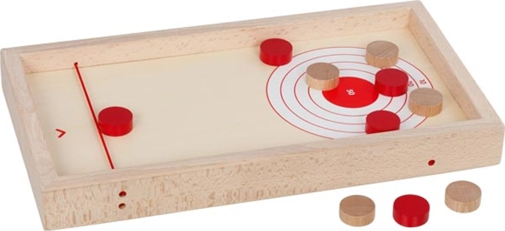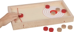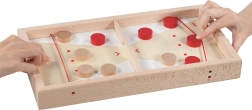 Šī divpusējā koka spēle piedāvā divas pieredzes vienā kastē. Super Puck režīmā divi spēlētāji cenšas pēc iespējas ātrāk izšaut savas ripas caur atveri uz pretinieka pusi, izmantojot elastīgās gumijas. Pagrieziet dēli, un iegūsiet mierīgāku, taču aizraujošu spēli uz precizitāti un punktu krāšanu, trāpot mērķiem.