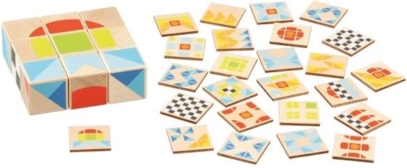 Atklājiet koka puzles spēles Kubus II burvību, kas piedāvā unikālu mācību un izklaides apvienojumu. Salieciet 9 klucīšus, lai izveidotu rakstu pēc parauga uz vienas no 25 koka kartītēm. Spēle veicina telpiskās orientācijas attīstību, strateģisko domāšanu un radošumu.