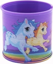 Izklaidējoša plastmasas spirālveida rotaļa ar vienradžu motīvu iepriecinās gan bērnus, gan pieaugušos. Pateicoties elastīgajai konstrukcijai, tā var “staigāt” pa kāpnēm, veikt trikus un ir lielisks stresa mazinātājs. Kompakts diametrs 6,5 cm un košas krāsas padara to par ideālu dāvanu bērniem no 3 gadu vecuma.