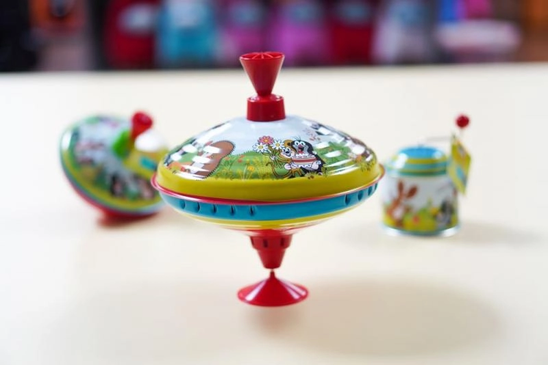 Atklājiet tradicionālas rotaļas prieku ar šo klasisko vilciņu ar Kurmīša motīvu. Pateicoties platam pamatam tas ir stabils, viegli iegriežams ar sviru un griežoties piedāvā jautrus vizuālus un skaņas efektus. Ideāli piemērots mazajiem bērniem, kuri vilciņu var atkārtoti iegriezt, vērot un izpētīt.