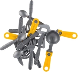 Komplektā ir praktisks notecinātājs, kurā bērni pēc spēles ērti sakārto traukus. Lomu spēles veicina patstāvību, viesmīlību un labus ieradumus – no gatavošanas un ēšanas līdz uzkopšanai.