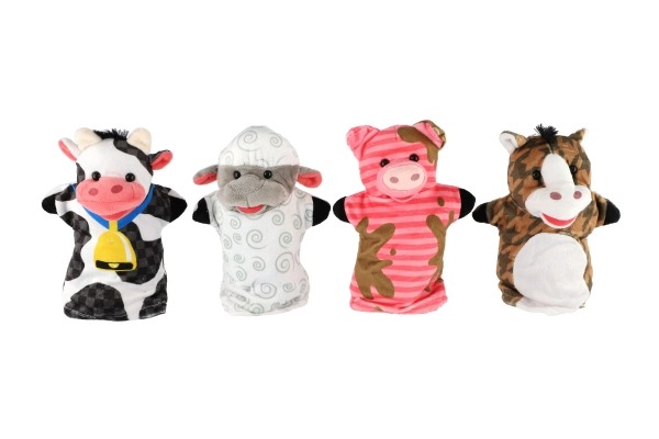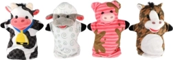 Komplektā ietilpst četras fermas rokas lelles: govs, aita, sivēns un kumeļš, ideāli piemērotas pasaku stāstu veidošanai.