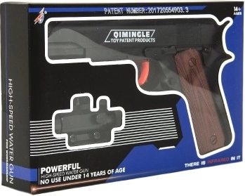 Šī realistiski izstrādātā plastmasas pistole ir paredzēta mīkstajām lodiņām, lai varētu baudīt dinamisku spēli ar uzsvaru uz drošību. Pateicoties kompaktajam 20 cm garumam, tā lieliski ieguļ rokā un ir viegli vadāma. Iepakota dāvanu kastītē ar izmēriem 24 × 15 × 4 cm.
