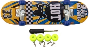 Izbaudiet bezgalīgas izklaides stundas ar mūsu pirkstu skeitbordu. Pateicoties kompaktajam izmēram, tas ir viegli pārnēsājams un vienmēr pa rokai. Šis skeitbords ir paredzēts bērniem no 3 gadu vecuma un piedāvā: