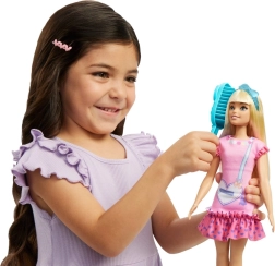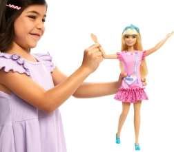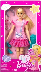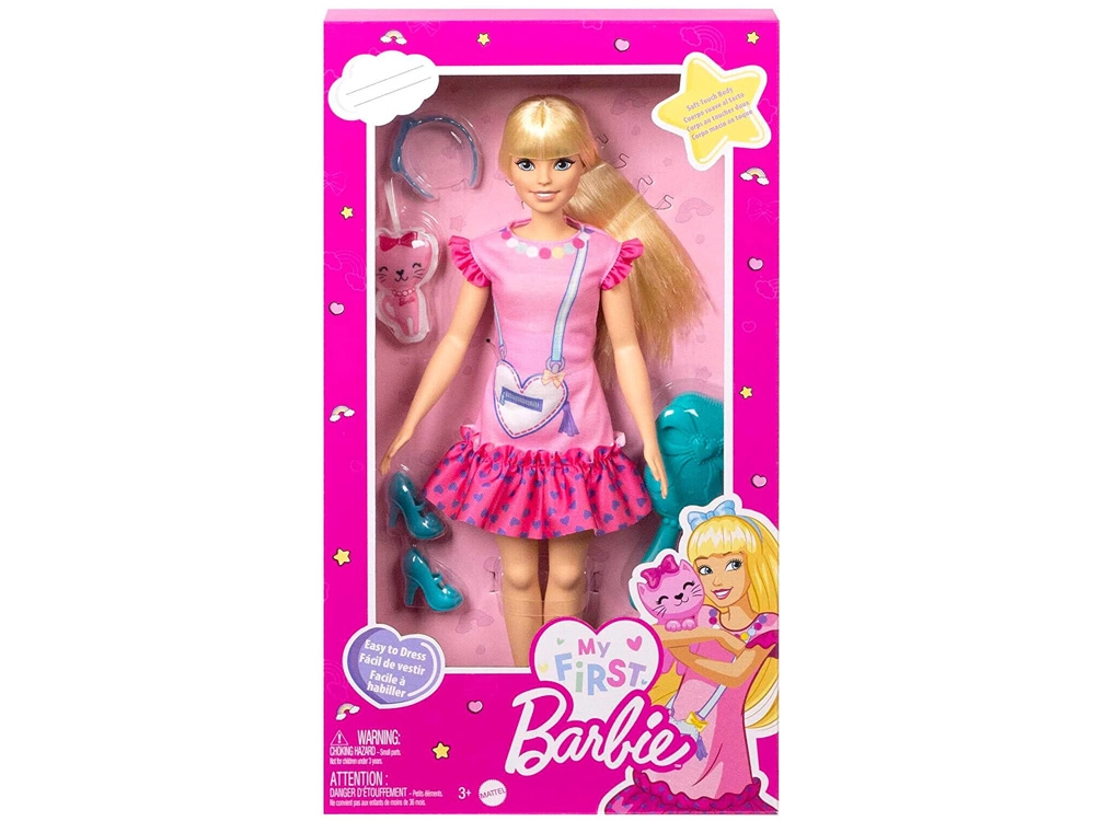 Ienirstiet pasaulē, kur sākas draudzība un fantāzijai nav robežu. Mana pirmā BARBIE sērijas lelle ir lielāka, viegla un patīkami lokana, lai mazās rociņas to viegli turētu, ģērbtu un veidotu pozās. Rozā kleitu rotā rotaļīgas detaļas, piemēram, volāni un sirsniņsominas grafika, kā arī saderīga matu lenta un kurpītes. Garie blondie mati aicina ķemmēt un veidot frizūras, kas dabiski attīsta sīko motoriku.
