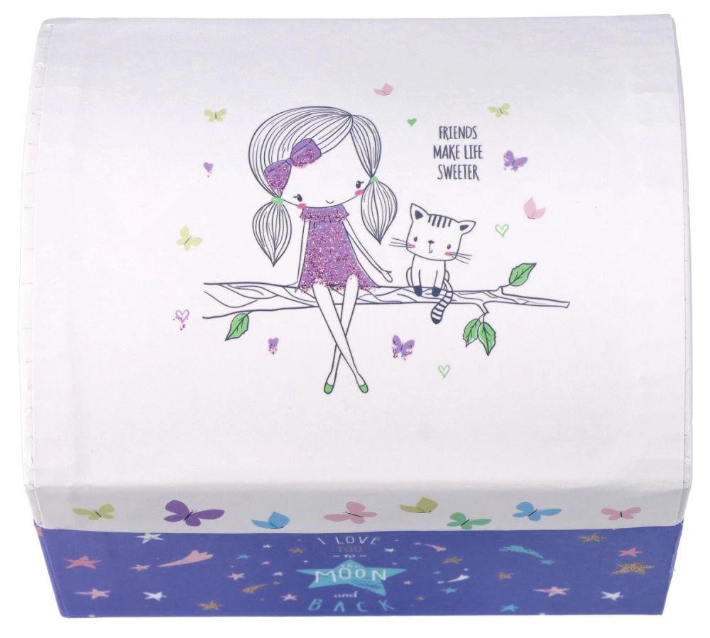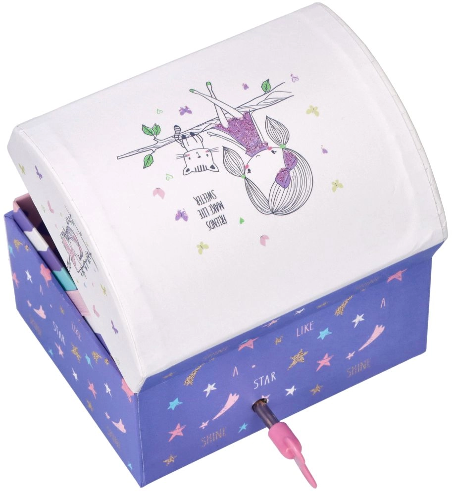 Šī skaistā mūzikas lādīte ar motīvu "Draugi" ir ideāla dāvana bērniem no 6 gadu vecuma. Rotāta ar krāsainiem rakstiem un burvīgiem attēliem, tā piedāvā ne tikai glabāšanas vietu, bet arī melodiju, kas iepriecina gan aci, gan ausi.