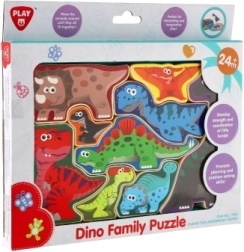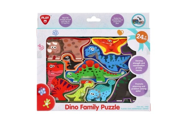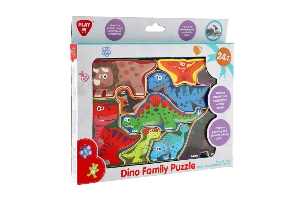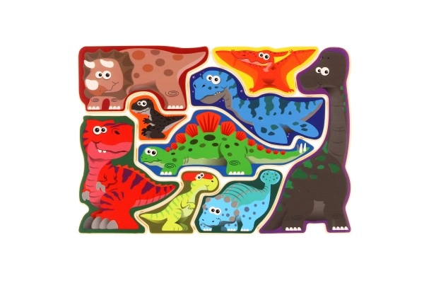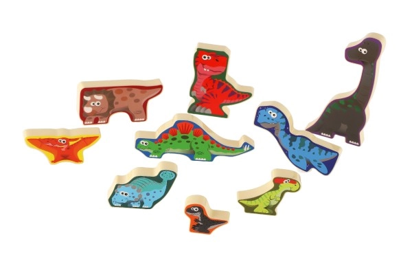 Atklājiet jautru koka puzli ar dinozauru motīvu, kas attīsta sīkās motorikas prasmes, loģisko domāšanu un acu–roku koordināciju. Deviņi koši puzles gabali dinozauru formā – bērni tos saliek pēc parauga vai spēlējas ar tiem atsevišķi. Ideāla izglītojoša rotaļlieta bērniem no 24 mēnešu vecuma.
