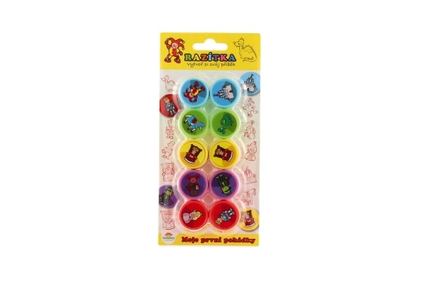 Bērnu spiedoglas Mani pirmie pasaku stāsti ir paredzētas katram mazajam bērnam. Tās ļauj drukāt atsevišķus attēlus un veidot stāstus, kas noteikti sagādā prieku un radošu izklaidi. Katra iepakojumā ir 10 gabali spiedoglu.