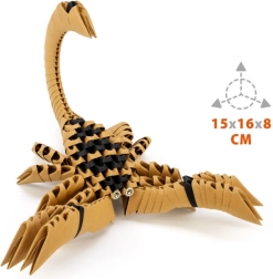 3D origami Skorpions no Alexander ir aizraujoša un nomierinoša radoša nodarbe bērniem un pieaugušajiem. Elementiem ir patentēta forma ar iespiestu locījuma līniju, tādēļ pamatmoduli saliksiet ar trim vienkāršām kustībām un pēc tam tos savā starpā savienosiet bez līmes. Gatavais modelis ir dekoratīvs un kļūs par oriģinālu istabas rotājumu.