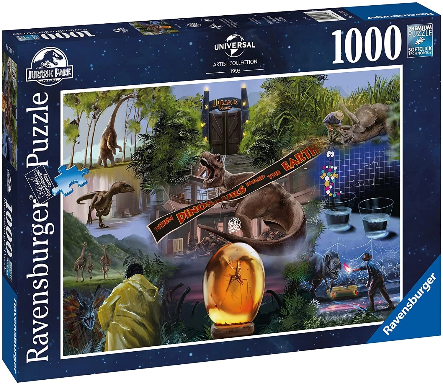 Ienirstiet dinozauru pasaulē ar ikonisko filmas Jurassic Park motīvu. 1000 gabalu puzle no Ravensburger ir pazīstama ar augstvērtīgu izpildījumu, precīziem izgriezumiem un patīkamu likšanas pieredzi. SoftClick tehnoloģija nodrošina, ka katrs gabaliņš bez piepūles un pareizi ieklikšķas vietā, savukārt virsma ar dabiska lina tekstūru minimizē atspīdumus un izceļ detaļas.