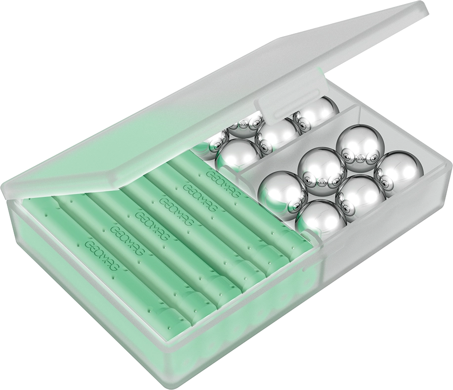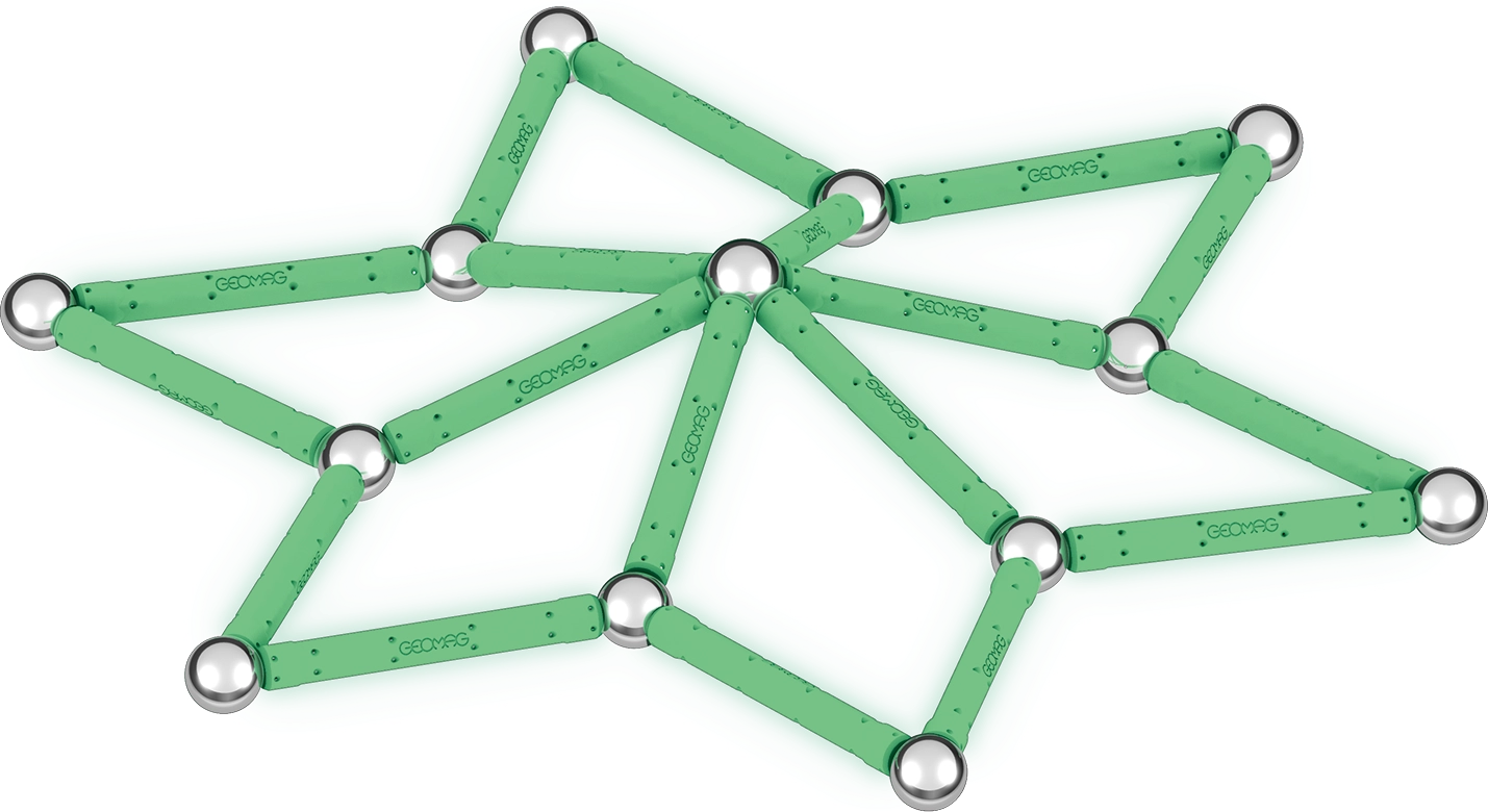 GEOMAG Glow ir oriģināls magnētiskais konstruktoru komplekts, kas ļauj veidot neierobežotu konstrukciju daudzumu, izmantojot magnētiskās nūjiņas un tērauda lodītes. Pateicoties fosforescējošajām detaļām, pēc apgaismošanas tumsā tavi modeļi skaisti mirdzēs – lieliski piemērots aizraujošiem eksperimentiem un pievilcīgai mācībai.
